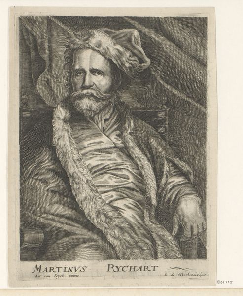 Editor: This is Jacob Neeffs’ portrait of Marten Ryckaert. I’m struck by the subject’s piercing gaze and that flamboyant fur collar. What is your take on this portrait? Curator: It feels like an intimate glimpse into Ryckaert's world, doesn't it? Neeffs captures something beyond mere likeness. The detailed textures—the fur, the fabric—almost vibrate with life, hinting at Ryckaert’s own vibrant artistic spirit. It’s more than just a portrait; it’s an experience, wouldn't you agree? Editor: Yes, it is very evocative. Thanks for sharing this perspective! Curator: My pleasure! It is artworks like these that remind me how the past is always alive with possibilities.