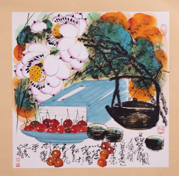 Dayou Lu created this Lotus Pond scene using ink and color on paper, in a manner that carries a rich cultural legacy. Here, we can consider the artist's intimate relationship with the materials and the way in which they bring this image into being. With its flowing strokes and vibrant hues, the work’s essence lies in its directness, capturing a fleeting moment in nature. The material qualities of ink and paper lend themselves to spontaneity, and demand control and precision of movement. This demands skillful execution, where each brushstroke contributes to the overall composition, defining form, texture, and depth. Inherent to the work is a connection to traditional Chinese painting, where the act of creation is as important as the final outcome. The work’s significance lies not only in its visual representation but also in the artist's engagement with cultural heritage, where appreciation for materials, process, and context elevates the work beyond mere decoration.