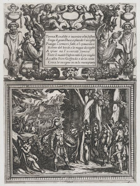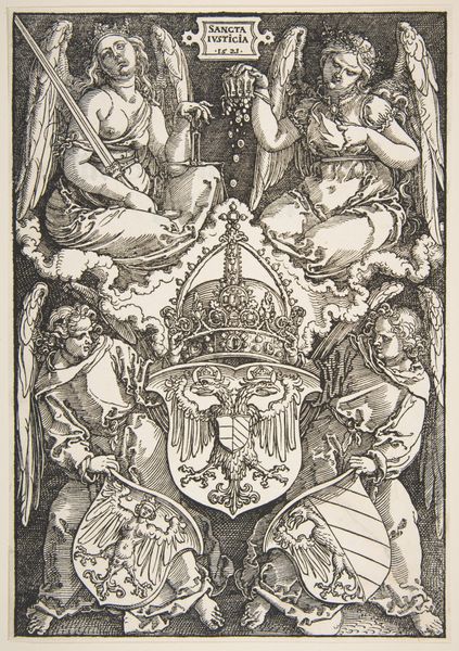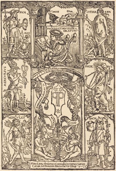Editor: This woodcut, "Apollo and the Muses," possibly from 1502 by Hans Süss von Kulmbach, is really intricate. The central figures and surrounding muses have this really captivating energy, but the whole composition feels very symbolic. What can you tell me about the significance of this artwork? Curator: It's compelling how Kulmbach synthesizes classical mythology with Northern Renaissance aesthetics. What stands out to me is how he represents Apollo and the Muses within a very specific historical context. What do you notice about the power dynamics depicted? How might these reflect the social order of the time? Editor: I see Apollo at the center, larger and more prominent than the muses. They surround him, each with a unique attribute... their attention seems directed towards him. I guess it speaks to a very hierarchical structure? Curator: Precisely. The classical theme provided cover for conveying contemporary notions of authority, knowledge, and gender. Think about the role of the patron during this period. To what extent does the artwork celebrate, or perhaps subtly question, that established power dynamic? We must also acknowledge that the story of Apollo and the muses has continued to be interpreted and re-imagined in ways that subvert traditional hierarchies. Editor: I see, so the image isn't just a neutral depiction of mythology but also a commentary on the artist's world, and beyond that has created new cultural conversation around that theme. This is really fascinating. I never thought of it like that before. Curator: Art of the past serves as a mirror to the present, forcing us to grapple with how the prevailing ideologies influence our creative process and what stories we choose to tell. It’s vital to interrogate, contextualize, and find contemporary relevance through an intersectional lens. Editor: Absolutely! It’s like we’re decoding a hidden message about art’s role within societal frameworks, now, as well as then. Curator: And that message keeps evolving as we keep looking.