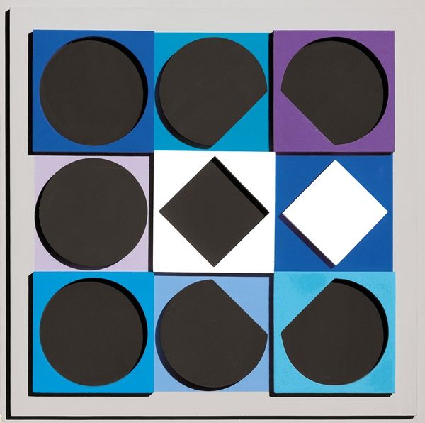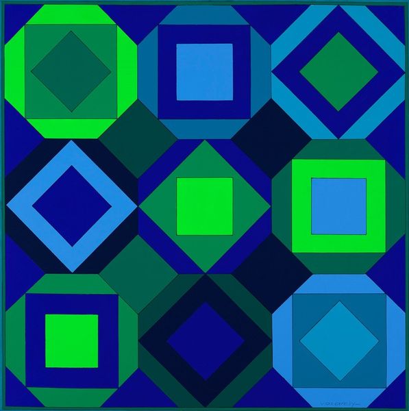 This untitled artwork was made by Rubem Ludolf using paint, with careful geometric planning. The mesmerizing effect comes from Ludolf's meticulous process, and the inherent qualities of his chosen medium. The paint’s texture allows for smooth, uniform color fields, with a weight that feels substantial yet light. Notice how the variations in tone, shifting from deep blues to near-whites, create an illusion of depth. The progression of concentric squares feels almost like a meditative exercise. Ludolf engages with a skilled tradition of geometric abstraction, a movement deeply rooted in the social and political contexts of its time. The precision in this work speaks to a careful process, perhaps even a commentary on the labor and repetition found in industrial production. Ultimately, this piece demonstrates the importance of materials, making, and context in understanding an artwork’s full meaning. It challenges traditional distinctions between fine art and craft, inviting us to appreciate the skill and intention behind its creation.