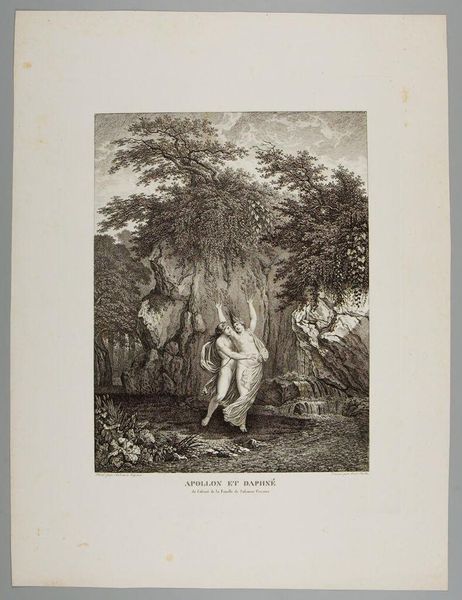 Editor: Here we have "The Rustic Concert" by Carl Wilhelm Kolbe. It's striking how the figures are nestled into the landscape. What can you tell me about its context? Curator: Consider the printmaking process itself. The labor, the tools. Kolbe is not simply representing nature; he's engaging in a dialogue with it through material means. How does this affect our perception of the scene? Editor: It makes me think about the effort needed to capture this fleeting moment. The labor involved in the material process, the transfer of image, elevates what might otherwise be dismissed as simple recreation. Curator: Precisely. This intertwining of labor, leisure, and material transformation challenges the traditional hierarchy between high art and the everyday. It makes you wonder about the intended audience and their own relationship to work and nature. Editor: That gives me a lot to think about. Thanks! Curator: My pleasure!