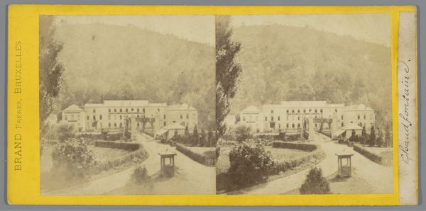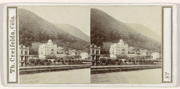 This is Achille Quinet's stereoscopic photograph of a grand building nestled at the foot of the Alps, created in the late 19th century. The choice of the stereoscopic format was in vogue during the Victorian era, offering viewers an immersive, almost tangible experience of the scene. Quinet, working within a society undergoing rapid industrialization, captures a longing for the sublime of nature. This large building, likely a hotel or spa, represents human intervention in the landscape. Note how the architecture is dwarfed by the imposing mountain, creating a visual dialogue between human ambition and the indifferent grandeur of nature. The photograph subtly underscores the era's complex relationship with progress and the environment. It invites us to consider our own place within the larger narrative of history and nature.