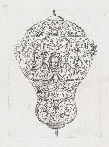 Nicolas Noël Boutet created this design for firearm decoration using graphite on paper. At first glance, the composition cascades diagonally, integrating ornate floral patterns and classical motifs. The drawing uses fine lines and delicate shading to evoke a sense of depth and texture. The design is structured around a central axis, featuring symmetrical griffins supporting a helmeted crest, symbolizing protection. Above, the floral elements introduce a contrasting rhythm, their curvilinear forms creating visual interest. This juxtaposition marries the rigidity of heraldic symbols with the fluidity of natural forms. Boutet masterfully blends aesthetics with symbolism, reflecting the era's inclination toward decorative arts. By examining the composition and the intricate details, we begin to understand the broader cultural values of the time, where even instruments of power were imbued with artistic expression. These elements create a dynamic interplay between form and function, making this more than just a design, but a statement of artistry.