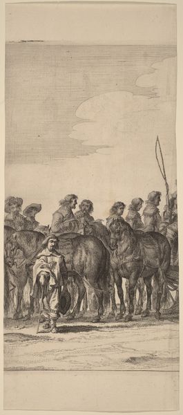 Johann Albrecht Dietzsch created this drawing, "Ein hochbepackter, von vier Pferden gezogener Wagen kommt einen Gebirgsweg herab," using pen and brown ink. The composition immediately draws us into a world teeming with activity. The arrangement of the figures, animals, and the heavily laden wagon creates a dynamic tension. The artist's use of line is particularly striking. The delicate, precise strokes define the forms and textures, giving a sense of depth and movement to the scene. We can observe an intricate network of diagonal lines indicating the steepness of the mountain road, while the curve and depth of the wagon wheel show a different direction. These visual elements serve to destabilize any static reading of the work. The drawing provides not just a representation of a scene but an invitation to ponder the complexities of representation itself, making us aware of the fragile and constructed nature of visual meaning.