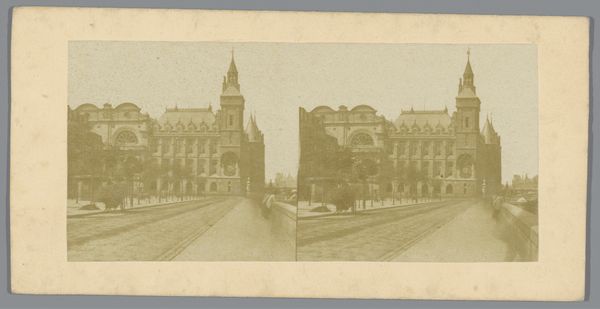 This stereograph of the Corcoran Art Gallery, was produced by Chas. S. Cudlip. The symmetrical composition immediately draws the eye, presenting two nearly identical images side by side. This duplication isn't merely for visual effect. It reflects a deeper engagement with perception and representation. The architecture itself—with its neoclassical lines and balanced facade—speaks to an era of order and reason. Yet, by presenting two views, Cudlip subtly destabilizes this sense of stability. The use of stereography plays with our understanding of space. It challenges our fixed perspective. This duality invites us to question the nature of reality itself. Are we seeing the true Corcoran, or merely a representation, a copy? The very act of viewing becomes a philosophical inquiry, underscoring that what we perceive is always mediated, never absolute. This prompts a dialogue between the artwork and its audience, inviting us to re-evaluate our relationship with both art and the world around us.