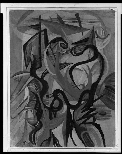 Editor: Here we have Karl Blossfeldt's "Art Forms in Nature 45," a gelatin silver print from 1928. The composition immediately grabs me. The curling shapes of the plant are so graphic and bold against the flat background. What strikes you when you look at this image? Curator: Indeed. Note how Blossfeldt frames the organic forms with an almost mathematical precision. The lines are crisp, the contrast stark. There’s an undeniable tension between the natural subject matter and the meticulous presentation. Observe the interplay of positive and negative space, and how each element contributes to the overall formal structure. Editor: So you're saying that the beauty isn't just in the plant itself, but in how he’s arranged and presented it? Curator: Precisely. We can examine this print and begin to extract meaning without needing external context. The beauty emerges from the internal relationships: line, form, texture, and their dialogue across the surface. Consider how the repetitive swirling shapes create a rhythmic visual experience. What philosophical resonance might such repetition invoke? Editor: It’s like he's revealing the hidden architecture within nature. I usually focus on the meaning *behind* the work, but seeing it this way highlights the importance of visual elements alone. Curator: Agreed. Through careful observation of these formal qualities, we are invited to consider the artwork on its own terms. Hopefully, that has provoked your thinking, and possibly offered a new perspective. Editor: Absolutely, it has. Thanks for pointing out all the hidden features.