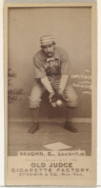 This small photographic card, produced by Goodwin & Company for Old Judge Cigarettes, captures Philip H. "Buster" Tomney, shortstop for the Louisville Colonels. Here, the baseball itself is a powerful emblem. Consider the orb’s historical and symbolic weight. From ancient games of ritualistic significance to its place in modern sport, the ball represents more than mere play. It is a symbol of action, precision, and the contest between opposing forces. We see its echoes in the globus cruciger, an orb held by rulers signifying worldly power, and in the pomme held by infant Jesus, representing dominion over the world. Tomney's focused gaze and the careful positioning of the ball in his hands evoke a sense of anticipation and potential energy. This tension, captured in a fleeting moment, transcends the boundaries of time, reminding us that these symbols continually resurface, transformed yet fundamentally unchanged, in the vast theatre of human endeavor.