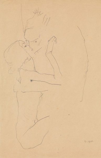 Egon Schiele made this drawing of a couple embracing with graphite on paper. Look at how economical Schiele is with his marks. You can see his thinking, the process of his looking, in the pentimenti, the barely erased lines. The bodies are formed by an accumulation of single, thin lines that barely describe the volume of the figures. It feels honest and raw. Especially the hands; they are so strange and angular, like claws. Schiele’s line is so brittle. The color of the paper is like skin, and the thin lines are like veins showing through. This work reminds me of drawings by Gustav Klimt, especially in the use of line to capture the emotional intensity of the figures, but Schiele’s feels more exposed, less adorned. It’s a testament to the power of drawing, of just a few lines, to convey so much feeling.