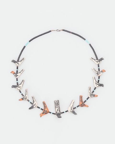 This ring was made by an anonymous artist, its date is unknown, and it lives here at the Minneapolis Institute of Art. Look at how this little figure is pieced together, like a tiny stained-glass window. I love the way the artist works with distinct shapes and colors, fitting them together with a casual precision. It’s like a mosaic, but one that you can wear. You can see in its crafting a process of assembling, of building something, piece by piece. The materials are so tactile and varied, from the polished stones to the rougher, textured silver. The iridescent shell that makes up the body, shimmering with blues and greens, adds such depth to the piece. It makes me think of a Lee Bontecou sculpture, where disparate elements come together to create something wholly new. Ultimately, it’s a celebration of the beauty found in simple forms and the ongoing conversation between artists across time. It reminds us that art is alive and constantly evolving.
