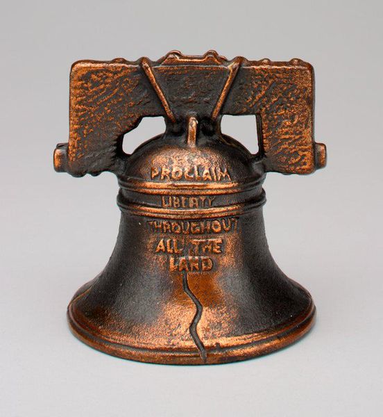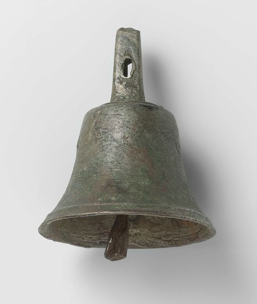 Editor: So, this bronze bell from 1781, created by L. Haverkamp... it has such a somber, imposing feel. The inscription and ornamentation give it weight, both visually and conceptually. What resonates with you when you look at this piece? Curator: Immediately, I see a call to community. Bells, across cultures and throughout history, have been powerful sonic markers. They announce events, both joyous and sorrowful. I am curious about the symbolic language etched onto its surface. Editor: Yes, the inscription…it looks almost floral. Curator: Notice the repetition and geometric elements. While decorative, these aren't merely aesthetic choices. The patterns may have served as mnemonic devices. Do you think that particular families or communities understood the imagery and symbolism? Editor: I hadn't thought of that – a sort of exclusive visual language. Almost like a family crest or a secret code. How does the material itself, bronze, influence your understanding? Curator: Bronze possesses this remarkable capacity to endure. Its very presence speaks to the lasting intention behind the bell's creation – to resonate not just in a single moment, but across generations. What purposes beyond sounding the hour might this particular bell have served? Editor: Perhaps it signaled more solemn occasions – a death, or maybe a call to arms? It's amazing how one object can hold so much history. Curator: Indeed. It makes you think about time, memory, and the echoes of the past that still reverberate today.