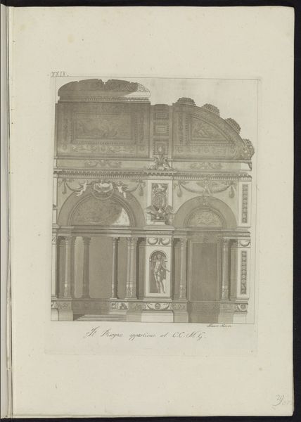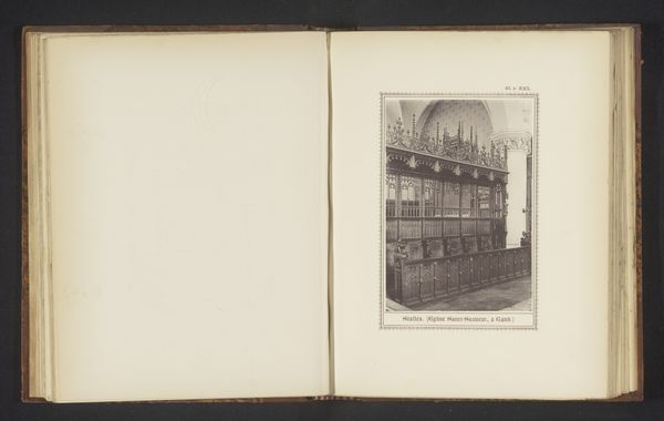 This is a print by Jules Royer, depicting the altarpiece of the Saint-Nicolas Chapel in Compiègne, France. The print is made using photogravure, a process which creates an image using light-sensitive gelatin tissue and copper plates, capturing the tonal subtleties of the original artwork. The image portrays a carved wooden altarpiece, a tour-de-force of carpentry and sculpture. The dark wood from which it is crafted, with its complex articulation, would have required immense labor and skill. The original altarpiece would have involved specialized woodworkers, carvers, and finishers, all contributing to its fabrication. This print mediates the experience of the original altarpiece, translating a monumental work of craft into a mass-produced image. This democratization of access challenges the traditional art hierarchy, where unique, handcrafted objects were valued above all. Royer’s print invites us to consider how the value and experience of art transforms through different modes of production and consumption.