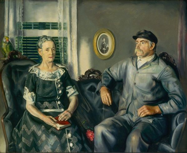 Andrei Ryabushkin painted this double portrait of I. F. Tyumenev and his wife, capturing a moment of domesticity and connection. Ryabushkin, working in late 19th-century Russia, was known for his portrayals of Russian life, often imbued with a sense of national identity. In this intimate scene, the couple is captured in a moment of quiet companionship. The wife is shown engaged in needlework, a traditional symbol of femininity and domestic skill. Her husband sits beside her, close but separate. The scene is unassuming, yet the figures are imbued with the weight of social expectations and gender roles, reflecting the period's complex cultural landscape. Consider how Ryabushkin's choice to portray this couple reveals the values of his time. This artwork offers a glimpse into the lives and relationships of a specific social class in Russia, inviting us to reflect on the emotional and personal dimensions of everyday life.