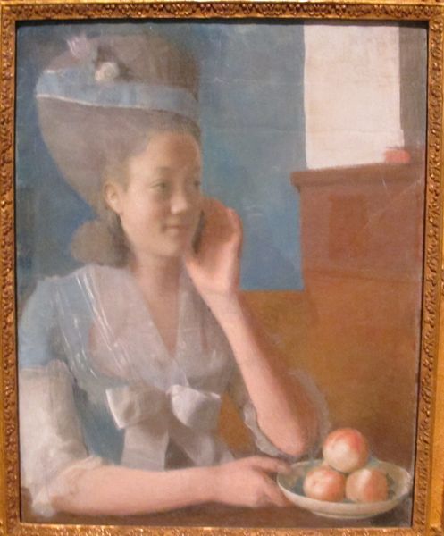 Guntis Strupulis painted "Nellijas Darkēvičas portrets" with what looks like oil on canvas; the date is unknown. The way Strupulis lays down the paint, it feels like he’s building up the form with these gentle, almost blurred strokes. It’s less about a perfect likeness and more about capturing a feeling, an essence. Looking closely, especially at her face, you can see how the colors blend into each other, creating soft transitions, particularly around the cheeks. The paint isn’t heavy or textured. It's smooth, almost like he’s trying to hide the work that went into it. Then there's her eyes, which are dark and intense, like she is looking right through you. Those eyes remind me of Alice Neel, whose portraits also have that raw, honest gaze. Ultimately, Strupulis' piece reflects how art often leaves space for the viewer, allowing us to bring our own experiences and perspectives to the table.