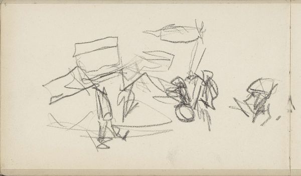 Isaac Israels made this pencil sketch, “Figuren op straat,” which translates to “Figures in the Street,” and it’s currently housed in the Rijksmuseum. What strikes me is how the artist embraces a kind of shorthand, a visual note-taking that feels really immediate. Look at the texture created simply by the varying pressure of the pencil. There’s this beautiful scratchiness, especially in the way the figures are rendered. It's like Israels is less concerned with capturing every detail and more interested in capturing the essence, the movement, and the energy of the street scene. The lines aren’t precious; they overlap and intersect, creating a sense of depth and space with very little information. The legs of a table are implied by loose hatches of lines, while the people have just enough detail to register as figures, nothing more. It reminds me a little of Daumier, that quick, gestural way of capturing the world as it flies by. It’s all about the process, isn’t it? The act of seeing and responding, trusting the hand to follow the eye.