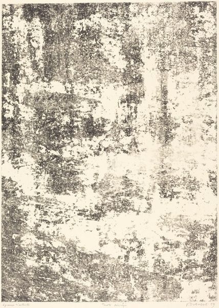 Jean Dubuffet created this intriguing lithograph, "Aire nue," using ink on paper. Notice how the composition eschews traditional pictorial depth, instead offering a densely worked surface. The texture is rich, almost tactile, created by countless small marks and scratches. This flatness challenges conventional perspective, drawing attention to the materiality of the print itself. Dubuffet, aligned with Art Brut, often rejected academic artistic values. The raw, almost primal quality here reflects his interest in art outside the mainstream, free from cultural conditioning. This print embodies his quest to capture the essence of lived experience, unfiltered and immediate. Ultimately, it’s the tension between the stark, unadorned surface and the intricate detail that makes this print so compelling, inviting us to reconsider our notions of beauty and artistic skill.