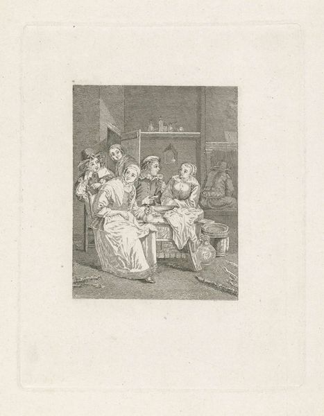 This print by Reinier Vinkeles depicts women gathered around a table playing cards in traditional dress. Consider the cards themselves, tools for divination and games of chance. They are ancient symbols. Long before playing cards, there were Tarot cards, rich with symbolism. The Tarot originated in 15th-century Italy, used for games and, later, esoteric practices. The presence of cards here evokes a sense of fate and hidden knowledge, echoing their presence in fortune-telling traditions across Europe, from Italian courts to Romani communities. We find a powerful collective memory at play, a shared fascination with the unknown. The arrangement and handling of the cards, as seen here, trigger a psychological dance between hope and fear, reflecting our deeply rooted desire to control the uncontrollable. The cyclical progression of the symbol of the card continues through the centuries, resurfacing in modern-day practices like tarot reading and gaming. The emotional pull of the unknown, once deeply embedded in ritual, now finds new expression.