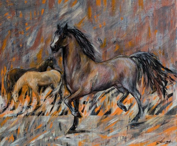 Eugène Delacroix, painted this study of horses, titled “Étude De Chevaux”, with oils on canvas, at an unknown date. Here, Delacroix's painterly approach is front and center, as he engages with the medium and method of painting as both process and subject. With each brushstroke, he captures the energy and dynamism of the horses, not just their outward appearance but also their inner vitality. The loose, expressive brushwork imbues the painting with a sense of immediacy and movement. The textured surface of the canvas becomes an integral part of the artwork, capturing the very essence of the artist's creative process. The interplay of light and shadow further enlivens the composition, adding depth and dimension to the depiction of the horses. This painting offers a glimpse into the labor of artistic creation, highlighting the artist's skill and dedication to their craft, by elevating the status of study to one of fine art.