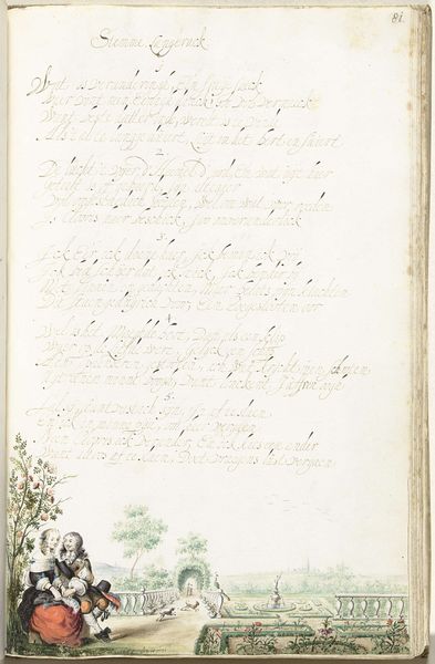 This page from Gesina ter Borch’s poem depicts figures from her poem on handmade paper, likely dating to the mid-17th century. Note the presence of three female figures, Cecilya, Floriaen, and Clorinde. While unique to Ter Borch, such groupings of three female figures draw on a long history of representing women in art, evoking, for instance, the classical Three Graces. The motif of the Three Graces, often associated with beauty and charm, has roots stretching back to ancient Greece. As this symbol migrated through time, it appeared in countless guises, each era imbuing it with new significance. The persistence of this motif reveals a deep-seated, perhaps subconscious, fascination with idealized femininity and harmony. This fascination, rooted in cultural memory, highlights how images resonate across centuries, tapping into collective desires and anxieties. Ter Borch's depiction revives and subtly reshapes this ancient symbol. This visual echo across time engages us on an emotional level, reminding us that art is a conversation between past and present.