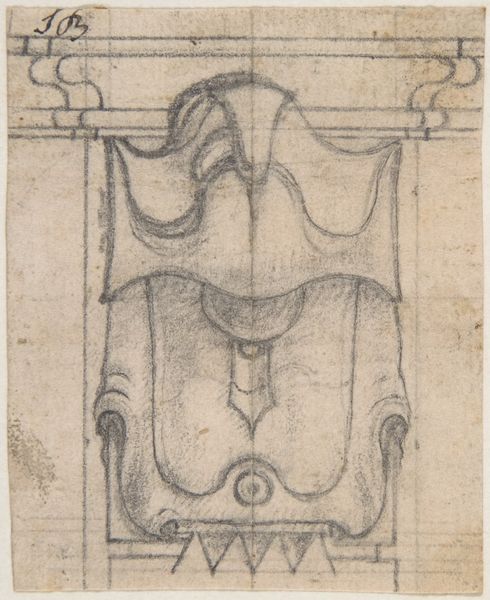 This drawing of a "Female Term encased by a Strapwork Panel" was rendered anonymously, using pen and brown ink with brown wash over black chalk. It raises important questions about the public role of art and the politics of imagery in its time. The drawing reflects the cultural fascination with classical antiquity during the Renaissance, specifically its interest in architectural ornament. The female term, a figure merging the human form with an architectural pillar, evokes ancient Roman and Greek traditions. Note how the drawing makes meaning through visual codes, such as the fruit basket, a symbol of abundance and prosperity. The social conditions that shaped the production of this drawing include the patronage system, in which wealthy elites commissioned artists to create works that reflected their status and values. Researching such patterns of patronage allows us to understand the institutions and social context that defined artistic production and aesthetic preferences during the Renaissance.
