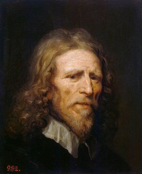 Editor: Here we have Anthony van Dyck's "Portrait Study of a Bearded Man," painted in oil. The warm browns and the sitter's gaze give it such an introspective feeling. What strikes you about it? Curator: Immediately, the visible brushwork grabs my attention. Note how the artist hasn’t blended the pigments entirely; each stroke contributes to the overall form. This emphasis on the materiality of the paint itself draws our eye to the surface. Observe the contrasts. How would you describe them? Editor: I'd say the contrasts are in texture, and the contrast in colour. Like, the impasto of the beard versus the smoother handling of the face. It's as if Van Dyck is experimenting, highlighting different artistic processes. Curator: Precisely! The varying textures play with light in unique ways. Furthermore, contemplate the composition. The cropped view focuses solely on the head, creating a sense of immediacy. There’s no distracting background. The intention is on capturing the essence, the pure form. This, I would argue, elevates this from simple portraiture to an essay on representation itself. Editor: I hadn't considered the focus created by that tight framing. The raw brushwork now seems deliberate, not unfinished, pushing me to confront the paint. Curator: It prompts consideration about the act of painting itself. Van Dyck moves beyond mere depiction and encourages consideration of art's representational methods. This work allows us a window into Van Dyck’s understanding of artistic presentation. Editor: That’s an entirely new way of appreciating portraiture that I hadn't really considered! It transforms how I'll examine paintings now. Curator: Indeed! And, ultimately, this expanded view enables richer comprehension of the inherent structure within the artist's selection.