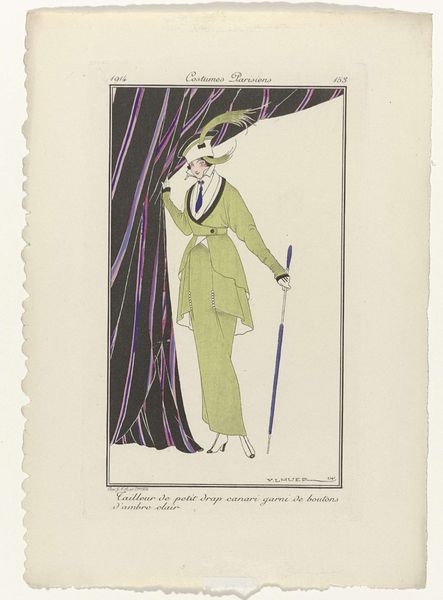 Curator: Let's discuss John Elsas's intriguing artwork, "17422 (_She was a byre woman…_)", dating back to 1932. It’s a striking collage, drawing, and gouache piece with ink on paper, currently residing here at the Städel Museum. Editor: Okay, wow. Immediately, I'm getting a sense of… displacement? She looks like a fractured fairy tale character. The disjointed shapes, that almost violent assembly of textures – it's strangely captivating. Curator: Indeed. Elsas created this within the historical context of the Weimar Republic, a period rife with social and economic anxieties, with growing class disparities, just before the rise of the Nazi regime. These tensions undoubtedly influenced his artistic vision. The byre woman—a simple dairymaid—is re-imagined through an expressionistic, almost caricatured lens, speaking, perhaps, to the exploitation of labor and gender. Editor: Caricature is spot on! Look at the disproportion, that impossibly pointy chin! It’s poking fun, but there’s also something… compassionate? It’s like he sees the humor and the hardship all tangled up together. Is that her in traditional garb? Or just scraps of pattern mimicking the idea of rural dress? Curator: The collage elements create a fragmented identity, layering various textures and patterns to symbolize the multifaceted nature of her role, the collision of rural tradition and the burgeoning industrial world. It's also essential to consider the implications of portraying working-class women, as often this reflects not only a personal history but a microcosm of wider socio-political anxieties regarding gender, class, and rural-urban migration. Editor: Absolutely. She's pieced together, literally, from fragments of the culture surrounding her. I’m particularly drawn to how the muted gouache offsets those sharper ink lines. It's melancholic but… assertive. You wouldn’t mess with this dairymaid. Curator: The handwritten German text beneath adds another layer. "Sie war Kühmagd, früher gewesen; heut zählt sie laut zu den Baronösen", translates to "She was a dairymaid, formerly; today she loudly counts herself among the Baronesses." This raises critical questions about social mobility, performance, and perhaps a veiled critique of class structures. Editor: Ah, the power dynamic shifts. Intriguing. So much contained in such deceptively simple shapes. I walked in thinking whimsical collage, and now I’m chewing on social commentary. Curator: Precisely. Elsas prompts us to delve beneath the surface of what seems, at first glance, like mere caricature. Editor: It’s those multiple layers—visual, textual, historical—that resonate the most, leaving you both amused and provoked. Thank you, John Elsas, for this disquieting glimpse of the past.