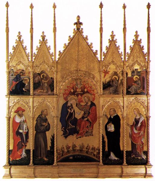This is the exterior view of the Ghent Altarpiece, painted by Jan van Eyck in the 15th century in what is now Belgium. This polyptych was commissioned for the church of St. Bavo in Ghent, and its imagery serves a public function by reinforcing Christian doctrine and local civic identity. The figures of the donors, Jodocus Vijd and his wife Elisabeth Borluut, are depicted kneeling in prayer. The two Saint Johns, and the Annunciation scene above, fill out the ensemble of holy figures. Van Eyck’s meticulous realism gives this painting a convincing presence that invites viewers into a space of devotion. The altarpiece reflects the religious culture of the time and Van Eyck's mastery of oil paint. Understanding the Ghent Altarpiece requires us to investigate both the artist's techniques and the social role of religious art in the Northern Renaissance. Primary source material, such as contracts, letters, and church records, can shed light on the creation, patronage, and reception of this iconic work.
