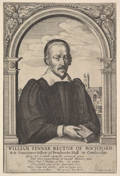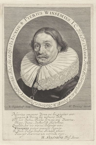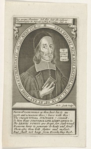 Editor: Here we have a drawing, "Portret van Johannes ab Almeloveen," created in 1678. It's an ink and charcoal piece on paper, currently residing in the Rijksmuseum. My first impression is one of quiet contemplation – almost austere. What do you see in it? Curator: Austere, yes, but also profoundly human. Look at the subtle lines around his eyes, the way the artist captured the weight of his brow. It feels less like a formal portrait and more like a glimpse into a lived life. He stares past the veil that most mortals are hiding behind. Notice the inscription below the portrait – can you imagine the weight and import the sitter and the artist would have placed on these words in that day? Editor: You mean that inscription; the Dutch script below the image? Is it about him? What would someone commission such a heavy image for, what was its purpose? Curator: Exactly! This was a commission that may have had varied intentions - memorial, commemoration, or perhaps just simply the sitter having enough florins to commission the art! Imagine being alive when that was commissioned – it might become your whole identity! The inscription speaks of life and the living Word giving life to the dying, almost like an epitaph before the tomb. And, Baroque, mind you! Lots of serious intention, though, to me, this isn't as heavy handed as other works from the time... What about you? Is the mood beginning to shift as we discuss the artwork further? Editor: It is. I was so focused on the somber tones, I hadn’t really noticed the small details. Now, knowing it might have been commissioned as a… memento mori sort of piece, I can appreciate that quiet intensity you mentioned. Curator: Precisely. Baroque wasn’t always about grandiosity, you see, it was also a gateway into a deeper conversation, even when the canvas may at first glance portray a different purpose, like showing wealth and success. It shows, also, that the conversation isn't *done* once the artwork leaves the easel, it's carried forth by generations who come later. Editor: This has certainly opened my eyes to that. Thanks for shedding light on the more subtle nuances of this portrait.