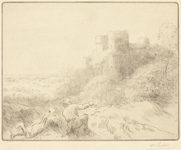Otto Scholderer made this graphite drawing of the Rheintor gate and customs tower in Zons in 1867. Graphite, in pencil form, is a humble material, directly connected to the industrial revolution. Mass production allowed for widespread use of this writing and drawing tool. The appearance of this work relies on graphite’s capacity for tonal variation. Notice how the artist varies the pressure to create depth and shadow. This is particularly evident in the rendering of the stone tower, whose age is suggested through subtle details. The linear quality of the drawing also emphasizes the architectural structure of the buildings. Yet, the scene also communicates a sense of everyday life. Scholderer used a simple medium to depict a site that was itself a center of commerce and control – the management of goods coming in and out of the city. Thinking about materials and making helps us understand how even a simple drawing is deeply embedded in its historical moment.