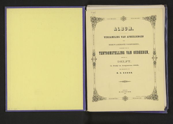 Curator: Here we have "Gallery of the Celebrated Landscapes of Switzerland," a print dating back to 1884 by J.A. Preuss. What are your initial impressions? Editor: Immediately, I notice the paper itself. Its creamy tone and the subtle texture suggest it's not just a ground for imagery, but an active participant in the work. It feels almost delicate, like a fragile historical document. Curator: The use of paper here speaks volumes. It reminds us that books, especially those from the late 19th century, were objects of considerable craft. The quality of the paper stock reflects the value placed on disseminating images of Swiss landscapes to a wider audience. Consider the networks involved in paper production, printing, and distribution. Editor: The typography fascinates me as well. The faded red ink, the variations in font weight and style. Look how the title is framed with such clean lines, yet the lettering has this incredible almost hand-crafted quality, hinting at traditional printmaking techniques alongside emergent mechanical reproduction. Curator: Precisely! The choice of typography aimed to evoke both modernity and established visual tropes of the era, signaling progress while simultaneously appealing to conservative aesthetic preferences among book consumers. Editor: Do you think the artist, by showcasing established landscapes, sought to capitalize on the popular picturesque movement, essentially creating a product for mass consumption? Curator: Undoubtedly. These images fulfilled a demand. They also served as powerful promotional tools, influencing perceptions of Switzerland as a destination and shaping broader understandings of nationhood and identity through consumable images. What appears sentimental at first glance actually contains a lot when you start to investigate its industrial background. Editor: This perspective truly enriches my understanding of the print. Beyond its aesthetic qualities, it becomes a valuable piece of evidence relating to 19th-century bookmaking processes and the commercialization of landscape imagery. Curator: Indeed, examining its physical existence deepens how we interpret the imagery inside its covers.