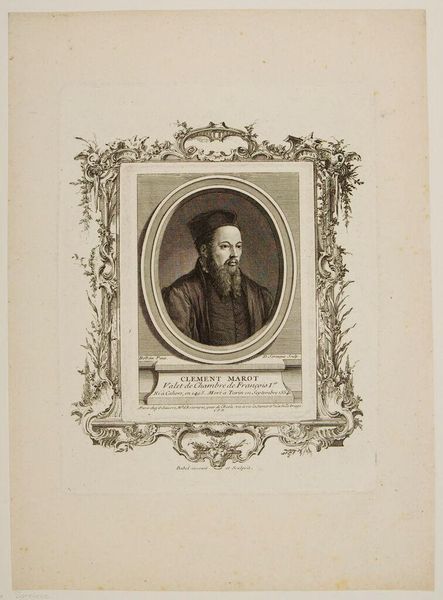 Editor: So, this is "Portret van Henry Howard, graaf van Surrey," a print made by Jacob Houbraken between 1741 and 1743, currently at the Rijksmuseum. It's incredibly detailed. It has a formality and decorum to it. How would you interpret the significance of this portrait in its historical context? Curator: Well, prints like these, especially of historical figures, circulated widely in the 18th century. They were instrumental in shaping public perception of the past. Think about the role of the printing press here. How accessible do you think this image would have been, and who might have seen it? Editor: I imagine it would have been available to the educated elite, displayed in libraries or studies, not exactly mass-produced. Curator: Precisely. And who was Henry Howard, the Earl of Surrey? Editor: Wasn't he a poet and courtier from the Tudor period, executed by Henry VIII? Curator: Yes. This image is therefore a recreation of someone from the past. What does that choice suggest about the priorities and historical consciousness of the patrons, artists and the wider population in the 18th century? Editor: It points to a fascination with the past, possibly an attempt to legitimize their own era by connecting to powerful historical figures, almost as if creating a genealogy of power. Curator: Exactly. And notice how the print itself, through its ornamentation, elevates the subject. This wasn't just about depicting a person, but about constructing a visual narrative. The formal setting speaks to the image that those with wealth and social position want to create of themselves for the general public. Editor: That’s fascinating! It reframes the artwork from a simple portrait to a calculated form of historical storytelling and social positioning. Curator: Absolutely. It makes you think about who gets remembered, and how they are presented to us.