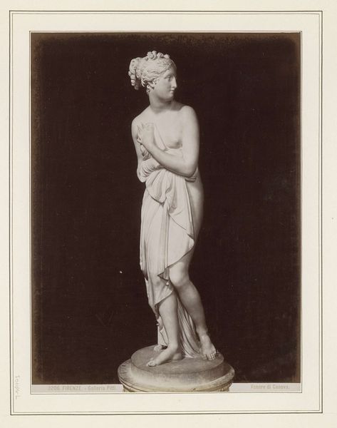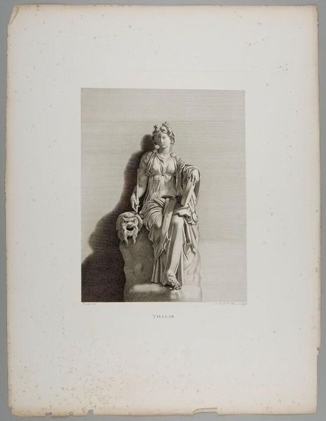 Curator: Here we have Jean-Baptiste-Raphael-Urbain Massard's "Euterpe, after the Antique." Massard, born in 1775, crafted this print, now residing at the Harvard Art Museums. Editor: It possesses a cool, almost aloof quality. The stark lines and shading give her a sense of distance, despite her classical drapery. Curator: Indeed. Consider the role of Euterpe, the muse of music. How does representing her in print form, a medium capable of wider distribution, change her symbolic function in society? Editor: The engraving is superb! Note how the subtle gradations in tone create volume and form. The linear precision contrasts beautifully with the softness of her features. Curator: These reproductions democratized access to classical ideals, yet also transformed them into commodities within a burgeoning art market. Massard played a significant role in this diffusion. Editor: I see how the print medium allowed Massard to amplify the original sculpture’s aura of timelessness. It's a fascinating blend of reproduction and unique artistry. Curator: Precisely! The print functions as both a record and an interpretation, adding layers of meaning to the source material.