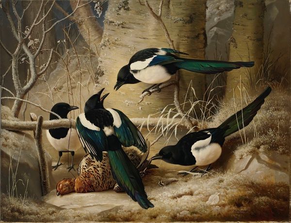 Ferdinand von Wright painted these Jays in 1882. Wright's detailed realism situates him in a 19th-century tradition of naturalism, yet his paintings move beyond mere representation to evoke a feeling of intimate connection with the natural world. Consider Wright's own social position as an educated member of the Swedish-speaking Finnish gentry. This privileged background afforded him the leisure and resources to pursue his artistic interests, yet it also placed him within a specific social hierarchy. Were these paintings an attempt to solidify his status or an emotional reckoning? In a society undergoing rapid industrialization and urbanization, Wright's paintings offered viewers an opportunity to reconnect with the beauty and tranquility of the natural world. These Jays, perched on a branch laden with berries, invite us to pause and contemplate our relationship with the environment and with each other.