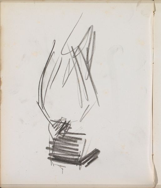 Curator: The Tate presents Helena Almeida's "Drawing (with pigment)," a work that immediately strikes me with its stark simplicity. The raw sketchiness gives it a raw energy. Editor: It feels…oppressive? That heavy shape, that darkness. Like someone is really struggling under its weight. What's the social context here? Curator: Almeida often used her body in her work, exploring the relationship between the artist, the artwork, and the space it occupies. This piece feels like she's physically grappling with these concepts. Note how the pigment is used almost as an extension of the figure's struggle. Editor: Almost like she's wrestling with her own artistic practice. I feel that conflict intensely. The bareness of the drawing itself amplifies the emotional impact. Curator: Exactly. It's a powerful statement about the labor and emotional investment inherent in artistic creation. A truly unique visual language. Editor: It definitely makes you think. I'm left with a sense of both burden and resilience.