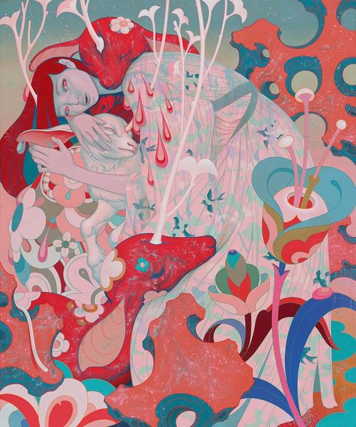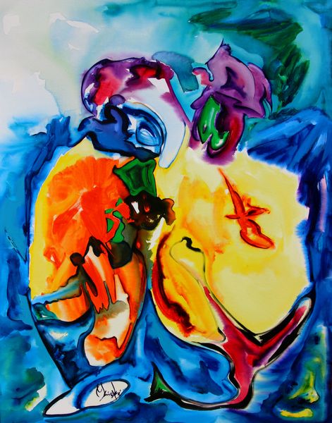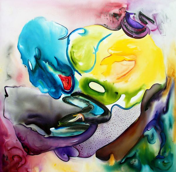 Mariojosé Ángeles made "I went down with braids", an intriguing watercolor with fluid shapes and vibrant colors. It feels like a stream-of-consciousness kind of work, where the artist lets the medium lead the way, embracing the unexpected. What strikes me is the watery quality of the paint. Look how the colors bleed into each other, creating these soft, dreamlike forms. There's a real push-and-pull between control and chance in the way the paint is applied. Take that blue shape near the center. It’s got this starry texture, like a little galaxy floating in the composition. It makes me wonder about the artist's process. Were they layering washes, letting them dry, and then adding more? It's like a dance between intention and letting go. Ángeles reminds me a little of Dorothea Tanning, especially in the way they both create these surreal, otherworldly spaces with a feminine touch. But where Tanning can be quite precise, Ángeles seems to revel in the fluidity and ambiguity of watercolor, inviting us to lose ourselves in the depths of the image.