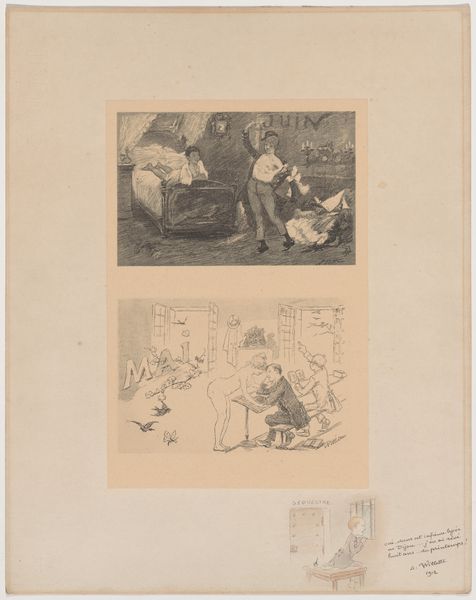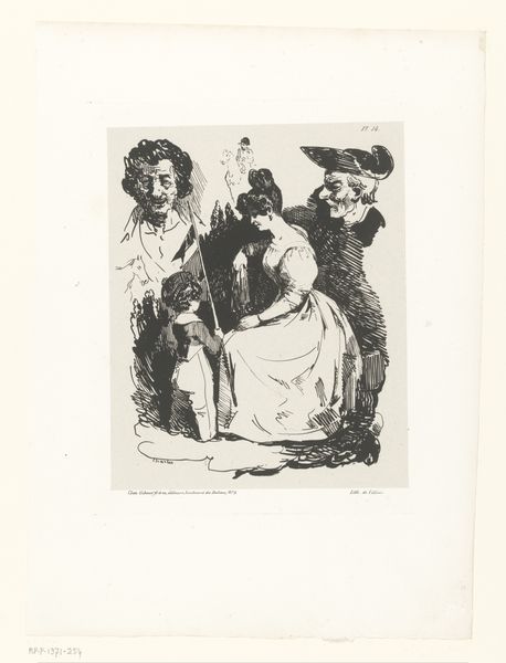 Théodule Ribot created this print, "Group of Five Cooks, Three of Whom are Sitting and Peeling," with etching. The composition, though seemingly simple, relies on a carefully structured arrangement of figures within a confined space. The hatching creates an atmosphere that feels both intimate and somewhat claustrophobic. The figures are rendered with a stark realism, their postures and expressions conveying a sense of labor and quiet contemplation. Ribot’s technique—the deliberate roughness of the etching—emphasizes the materiality of the medium itself. This materiality, combined with the muted tonal range, invites a consideration of labor and the working class. It asks us to consider how the figures are positioned within their social and physical environment. Ultimately, the print's power resides in its understated yet profound exploration of form and content. It encourages us to look closely at the ways in which artistic techniques can reflect broader social and philosophical concerns.