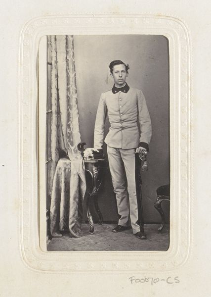 This undated photograph, "King of Naples," currently residing at The Art Institute of Chicago, immediately strikes you with its formal composition and tonal range. The anonymous photographer has arranged the subject centrally, emphasizing his regal attire and posture. The sepia tones lend a sense of historical gravitas, inviting contemplation on the nature of power and representation. Consider the vertical lines of the backdrop and the King's figure, juxtaposed with the ornate details of his uniform. Semiotically, each element functions as a signifier of status and authority, yet the subdued palette mutes any overt display of wealth. The King's gaze, directed slightly off-center, suggests a psychological depth that transcends mere portraiture. The photograph uses sharp focus and soft gradations to negotiate between detail and atmosphere. The use of light and shadow, coupled with the textured drapery, destabilizes any singular meaning. This photograph is not simply a record but a complex construction of identity.