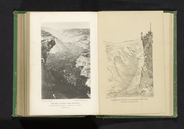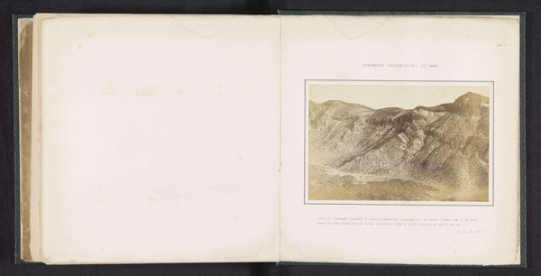 Curator: Looking at this stark landscape, I’m immediately struck by its moodiness. There’s something almost oppressive in the weight of the rocks, would you agree? Editor: This is "Schuilplaats op de Wildkarspitze", a print by Friedrich Simony, dating back to 1876. Its realism is fascinating, depicting what looks like a refuge constructed within an imposing, rocky landscape. What interests me are the raw materials: the stone, the evident human labor to build that shelter amidst such a scene. Curator: Right. The placement of the refuge itself invites interpretation, doesn’t it? Why there? Is it merely practical, providing shelter from the elements, or does it symbolize something more profound about our relationship to inhospitable environments and our attempts to dominate them? The gendered history of alpinism definitely comes to my mind. Editor: That's interesting. I was drawn more immediately to how it negotiates human intervention within nature. How are we shaping landscapes? To me it is obvious that it uses a medium – print – capable of mass production, rendering accessible images of the Alpine experience to a wider public that may not have otherwise accessed it. Curator: Accessibility is important to consider, but even that element is imbued with certain power dynamics of who is provided such a portrayal of accessibility, in what conditions it is seen. You know, in the context of its time, that landscape may have offered a very gendered escapism, from a bourgeoise reality. Editor: I hadn’t considered that! But now it seems obvious. I'm now curious about what the availability of the print implies about changes in printing technology, about consumption trends regarding representations of untouched natural landscapes in bourgeois homes. Curator: I think we are only scratching the surface here but now, seeing how the dialogue around accessibility, technique, and gendered access comes into play, it changes our perspective. Editor: Absolutely. And that little stone hut up there—it’s not just about being a refuge; it's about making something with your own hands, something practical and that lasts from one generation to the next.