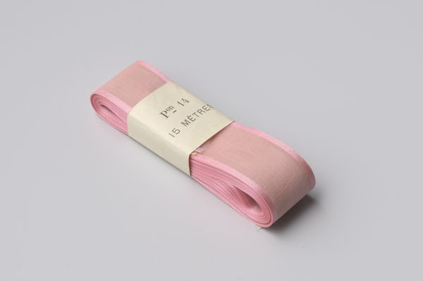 Editor: This is "Lint van lichtgroen gaas" by Gustav Schnitzler, made sometime between 1900 and 1915. It’s a photograph of a roll of light green ribbon. It seems like an unusual subject for a photograph; almost like a commercial product shot, yet presented as art. What do you see in this piece, considering its historical context? Curator: That’s a keen observation. Indeed, still-life photography in this era walks a fascinating line between art and commerce. Photography was democratizing image creation, challenging established art hierarchies. Consider the social context: the rise of department stores, the burgeoning advertising industry. Schnitzler might be reflecting—or perhaps critiquing—this commercialization. Editor: So, you think this piece might be about more than just a ribbon? Is it trying to say something about the role of imagery at the time? Curator: Precisely. The very act of photographing this ribbon, presenting it within the aesthetic framework of a museum, elevates it, prompting questions about value, consumption, and the evolving role of photography in shaping perceptions. Also, the soft, diffused light romanticizes an everyday object. Does the writing on the packaging mean anything? Editor: I see "15 metres." Is this, perhaps, drawing attention to the process of commodification, stripping objects of their meaning beyond their physical measurement? Or is this actually for an advertisement of some sort? Curator: An advertisement within the context of an art museum! These readings could potentially overlap. Think about it; it might speak to our contemporary moment, too. Art reflecting consumerism feels extremely contemporary to me, too. This has really made me think about commercial photography's evolution. Editor: I see now; framing it through societal shifts reveals that an ostensibly straightforward piece of photography carries so much more complexity. Thank you.