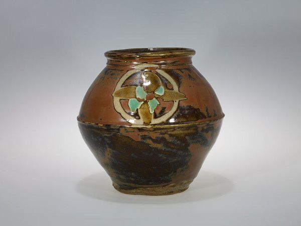 Curator: This faceted jar at the Minneapolis Institute of Art, dating back to the late 19th or early 20th century, is an earthenware piece, but its dark, lustrous glaze almost gives the illusion of metal. Editor: It looks like it has depth, and almost like amber to me, doesn't it? Very rich, dark tones. Also that geometric quality created by those vertical facets brings a very modern sensibility. Curator: Well, in the context of its time, such pieces held diverse roles, everything from domestic storage to ceremonial presentation, depending on the glaze, decoration, and form. Editor: I notice the subtle variations in the glaze, small raised dots almost like droplets of condensed water all over the jar. Do they suggest anything to you? Is there some particular intention from the craftsman perhaps? Curator: Potters in many cultures often used glazes and forms derived from nature. Considering that the piece doesn’t feature obvious iconography, that more subtle effect may have been meant to reference natural textures and patterns. The light reflecting off that glazed surface, in controlled circumstances, may have been a point of interest to collectors or audiences familiar with that artistic intention. Editor: It is visually intriguing. Even the subtle geometry with the flat panels contrasted by that domed top creates a unique tension. Are those purely aesthetic choices, or could the panels themselves carry a more symbolic meaning, suggesting perhaps structured living, family connections, the stages of life represented linearly? Curator: That’s a thoughtful question. In absence of identifying marks or records about who commissioned the piece, it's harder to say, but given similar artworks with those decorative and functional panels in the 19th century, they tend to be linked to cultural ideals of social cohesion through geometric harmonies. Editor: Well, regardless of the original intent, the jar's form invites viewers to contemplate those concepts today, and the smooth curves do still manage to retain an air of serene, comforting, organic growth despite its artificial making. Curator: I agree, there's a balance to appreciate between crafted structure and natural allusions that would certainly spark dialogue about social values between creator and audience, as it has here.