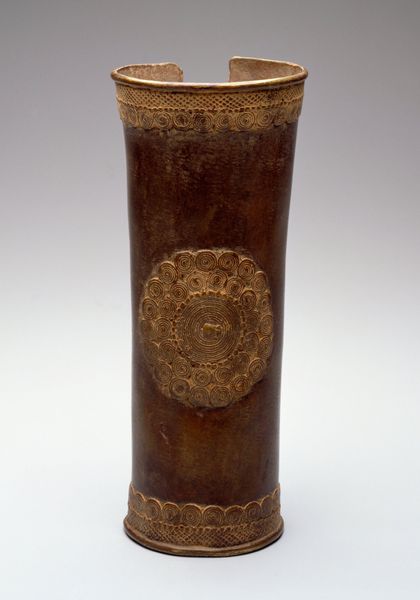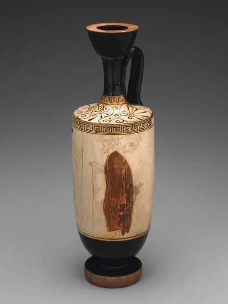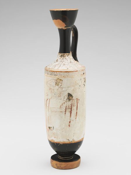 Editor: So here we have Nonomura Ninsei’s "Tea Caddy, named Tall (Seitaka)," made sometime between 1650 and 1699. The material is ceramic, and I immediately get a sense of the object’s careful, vertical composure. What’s your take when you look at it? Curator: It whispers stories, doesn’t it? It's a world within a tiny pot, dreams swirling inside a tall caddy, much like steam from hot tea itself. Picture the artist's hands shaping this earthy vessel. Now, notice that band of different-colored clay near the bottom: What feeling does it give you? Editor: Stability, I suppose? Like the vessel is confidently standing on the Earth. But also it provides contrast? Curator: Precisely! Ninsei wasn’t just crafting a container; he was playing with textures and visual weight. The glazing that looks almost drippy, too: Do you feel like the artist was totally controlling everything here, or was he embracing the unexpected? Editor: Definitely embracing the unexpected. It's earthy, maybe even a little rough around the edges. It doesn’t seem overly polished or precise. Curator: Exactly! I see that surrender as part of the art itself, welcoming chance and celebrating the natural process. A dialogue between intention and raw material. And of course, within Japanese culture, it’s about quietude and reflection. Editor: So, even the "imperfections" are kind of the point? I guess that ties into Wabi-sabi aesthetics, right? Seeing beauty in the flaws... Curator: Perfectly put! Finding profound elegance in what others might overlook. Which makes sipping from a tea caddy much deeper than just drinking tea. Now I see it! It’s about the ritual, the presence. It also reminds us that nothing ever remains the same.