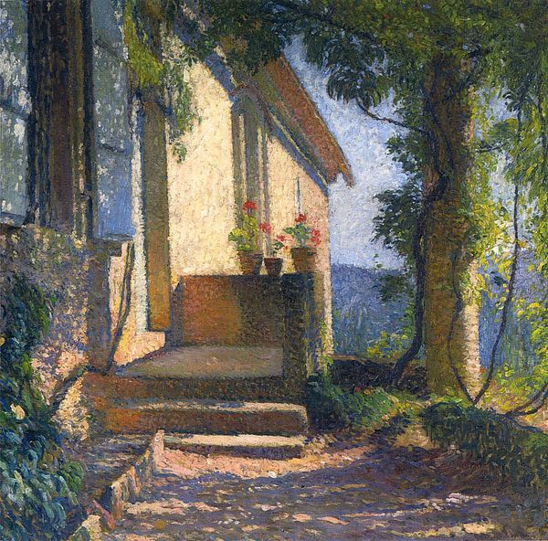 Ľudovít Čordák painted 'Pod Slaneckým hradom' with oils, and the process feels so key here. You can almost smell the linseed! Look at how Čordák builds up the layers, especially in the foreground. There's this tactile quality, a real sense of the hand moving, feeling its way through the scene. It's not about slick perfection; it's about the joy of pushing paint around. I love the little pops of red amidst all that green, those blooms. They’re like tiny explosions, aren’t they? The way Čordák dabs the paint on, it's almost sculptural, lending depth and energy to the scene. You sense a kind of freedom in his approach to the garden, almost as if he is channeling Bonnard. I love the way he leaves things open, embracing the messy, unpredictable nature of both paint and the world itself.
