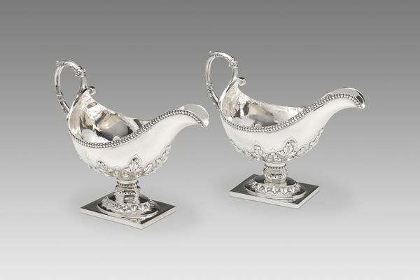 These silver sauceboats were crafted by Thomas Fletcher in the 19th century, a period when decorative arts reflected social status and aspirations. Fletcher was one of America’s leading silversmiths during the rise of industrialization, which allowed luxury items to be produced more efficiently, though not necessarily more equitably. These sauceboats embody the complexities of early American identity. Silver, as a material, carries a history of colonial extraction and wealth accumulation. Owning such pieces indicated not only taste but also economic power. The artistry and craftsmanship involved also speaks to the contributions of skilled laborers, some of whom would have been enslaved or indentured. The sauceboats, while seemingly simple, offer a glimpse into the intricate dynamics of class, labor, and the cultural values of the time. Their beauty invites us to reflect on the stories and inequalities embedded within objects of everyday use.