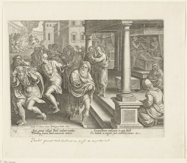 This print by Balthazar van den Bos, made in 1558, captures a scene rife with symbolic tension. We see men poised to shoot arrows at a corpse, a striking image rooted in the story of the death of king Jehoram. This act is not merely violence; it’s a symbolic rebellion. The motif of the arrow, typically associated with Cupid and love, is here inverted. It becomes a tool of desecration, symbolizing the rupture between generations and the rejection of paternal authority. This inversion echoes in other artistic representations across time, such as the recurring theme of the "Fall," where once sacred objects become instruments of moral decline. Consider the emotional weight of aiming an arrow at a paternal figure. It speaks to deeply rooted conflicts and unresolved tensions within the family and society. This act transcends mere historical narrative, engaging viewers on a subconscious level, compelling us to confront complex emotions tied to authority, rebellion, and the cyclical nature of history. In the ever-turning wheel of time, symbols evolve.