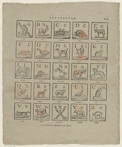 This alphabet sheet was printed by Erve Wismuller. It’s filled with symbols, each tied to a letter, revealing a world where learning intertwines with cultural memory. Look at the letter 'N', accompanied by a nest. The nest, a symbol of home and nurture, appears across cultures, from ancient Roman mosaics, where birds feed their young, to Renaissance paintings. The nest evokes a sense of belonging and continuity. Its reappearance across time suggests a deeply rooted human need for security. The image engages with our collective subconscious by connecting the abstract concept of letters with concrete, emotionally resonant images. It stirs our unconscious desire for knowledge, security, and belonging, demonstrating how symbols carry cultural and psychological weight through the ages. These symbols take on new meanings, shaping our understanding of the world.