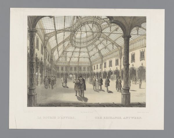 Editor: So, this is Giacomo Brogi's photograph, "Interieur van de Galleria Vittorio Emanuele II te Milaan, Italië," taken sometime between 1878 and 1881. The scale feels so impressive, and the light is captivating. What's your take on this piece? Curator: It’s fascinating to see this bustling, modern space documented so early in its existence through photography. Think about the cultural context: photography itself was still a relatively new medium, and grand architectural projects like the Galleria were statements of national pride and progress. What kind of public life do you imagine took place in this gallery? Editor: I can see it becoming a central gathering place, almost a stage for social interactions. But who was this space intended for? Was it accessible to all levels of society? Curator: That’s a crucial question to ask. The Galleria was conceived as a symbol of Milan's modernization and a hub for the bourgeoisie. The pricing of goods and services would have, intentionally or unintentionally, dictated who could truly participate in its offerings. These spaces were certainly not equal, though they purported to be. Do you notice anything about how Brogi chooses to represent the figures within the space? Editor: I see. The people are almost blurred, anonymous... part of the grand architectural tableau. So the photograph reinforces the idea of the architecture itself being the protagonist here, subtly highlighting the societal structure it caters to. Curator: Precisely! And how it contributes to constructing a very specific narrative about Italian progress and identity at the time. Editor: That makes me rethink my initial impression completely. Thanks, I learned a lot. Curator: Me too! It's so rewarding to revisit these historical works and uncover new insights about how these places affected its cultural surroundings.