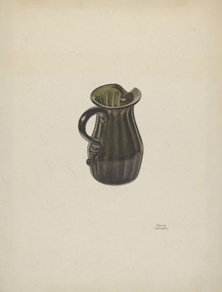 Editor: So, here we have Janet Riza's "Cream Pitcher" from around 1936, a pencil drawing of, well, a cream pitcher. I’m struck by its simplicity. What can you tell us about it? Curator: This piece offers us a window into the representation of domesticity in art during the 1930s. How might a seemingly simple image of a cream pitcher reflect broader social values and ideals of that period? Editor: That's a great question. I guess it makes me wonder about the role of design and everyday objects as reflections of societal aspirations. Curator: Precisely. Consider also how the act of drawing, of meticulously rendering an everyday object, elevates it. Does this act change our relationship to the pitcher? In what way might the artist’s careful representation speak to the changing roles of women in design or craft during this time? Editor: Hmm, interesting point about elevating the object. It definitely makes me consider how something functional can also be art, depending on the context and the intent. Curator: And further, who was this art *for*? Was this for an exhibition, or study for mass-produced goods? Who *could* afford fine tableware during the depression, and what does depicting *this* pitcher tell us about who Janet Riza’s audience was? Editor: I hadn't even thought about it that way. The economic backdrop of the 1930s completely changes my perspective on this seemingly simple image. It invites all kinds of reflections. Curator: Exactly! The power of art, I find, lies in revealing hidden narratives behind what we often overlook. It has opened our understanding in a totally unexpected and welcome way. Editor: Agreed! It is truly amazing to consider the story that this object, seemingly very straightforward at first glance, holds about art, social classes and gender roles.