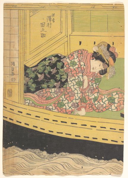 Editor: This is Yashima Gakutei’s "Cherry Blossom Dance," a woodblock print of dancers. It’s quite a small piece, yet it feels so lively. What historical narratives do you think it speaks to? Curator: Consider the transient beauty celebrated here, echoing *mono no aware*, the pathos of things, deeply rooted in Japanese aesthetics and Buddhism. What sociopolitical conditions fostered such an appreciation for fleeting moments? Editor: Perhaps a reflection on the ephemeral nature of life amidst social change? Curator: Precisely. Gakutei created this during the late Edo period, a time of relative peace but also strict social hierarchies. These prints offered a subversive glimpse into the floating world, or ukiyo, allowing for the performance and perhaps even the questioning of social roles. What do you make of the women's obscured faces? Editor: Maybe it universalizes their experience, making it less about individual identity and more about a shared cultural expression? Curator: A powerful observation. Understanding art is about unearthing these layers of history and meaning. Editor: This was really insightful, I hadn't considered the political context.