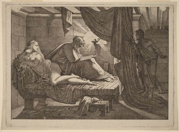 Anton Tischler rendered this scene, a wounded young man attended by physicians, in an etching. The image brims with symbols of life, death, and restoration. The sword lying discarded on the floor, a potent emblem of conflict, contrasts sharply with the tender care offered by the physicians. This dynamic reminds me of similar motifs found in ancient Greek reliefs, where the fallen warrior is often juxtaposed with images of healing and lamentation. Consider, for example, the figure of the doctor tending to the youth's head, his hands mirroring gestures of solace seen in depictions of the Virgin Mary cradling the body of Christ. The semiotic thread weaves through time, binding ancient rituals of mourning with early modern medical practice. Such motifs carry potent psychological weight; they engage our deepest fears and hopes around mortality and healing. Observe how the artist uses light and shadow to amplify the emotional intensity, drawing us into this intimate tableau of pain and compassion. The wounded duelist, an eternal symbol in art.