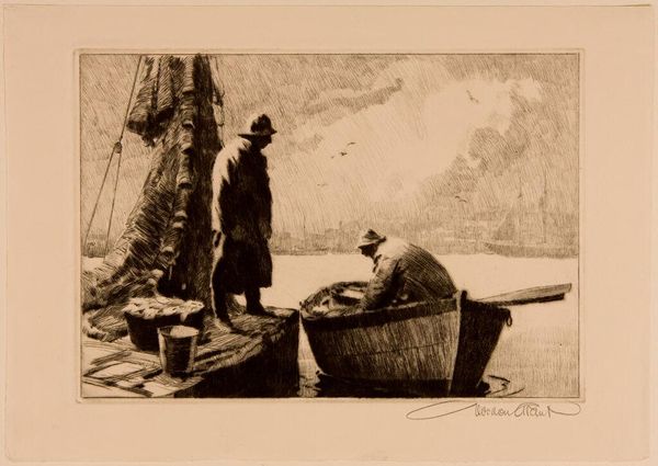 This is Louis Sørensen's illustration for "Hjortens flugt," housed at the SMK. A grizzled oarsman rows, his gaze fixed ahead, while a younger figure sits in the boat. The boat itself is an ancient symbol, think of Charon ferrying souls across the river Styx, the boundary between life and death. This motif recurs throughout art history, embodying journeys, transitions, and the passage of time. Here, the turbulent sea evokes a sense of peril, yet the act of rowing suggests a determined navigation through life's challenges. Notice how the oarsman's firm grip and focused expression resonate with the archetype of the steadfast guide. This image stirs a deep, primal response. Sørensen taps into our collective memories, reminding us of humanity's enduring relationship with the sea, and the eternal quest for safe passage. The sea is a powerful force engaging viewers on a deep, subconscious level. It is a reflection of the soul; the characters’ journey is a psychoanalytic symbol of life. The symbol of the boat continues to resurface. It evolves, taking on new meanings as cultures and contexts shift, ever reminding us of our shared human experience.