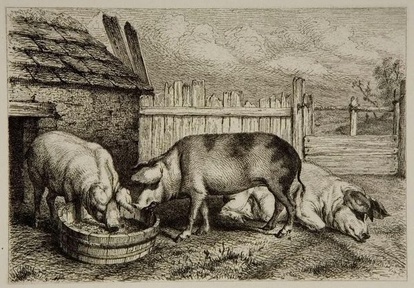 George Morland’s painting shows a sow and her piglets in a sty. The grouping of animals can be seen as a representation of fertility, family, and rustic simplicity, themes that are deeply rooted in human culture. The pig, though often associated with baser instincts, has also appeared as a symbol of abundance and good fortune across cultures. Think of the cornucopia, where images of well-fed animals are an emblem of prosperity and natural bounty. Yet, the symbolism is complex. In other contexts, the pig is a sign of gluttony and impurity. One cannot avoid this double coding. Consider how these contrasting associations play out over time. The sow and her piglets are not merely a scene of rural life but a tableau rich with symbolic weight, revealing the continuous, cyclical progression of symbols, their evolution, and their adaptation across different historical contexts. The image engages us on a primal, subconscious level.